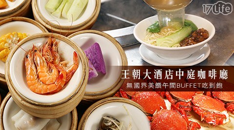 吃到飽!只要520元起即可享有【王朝大酒店《中庭咖啡廳》】原價最高2,860元無國界美饌午間Buffet:(A)單人方案/(B)雙人方案/(C)四人方案,各式無國界料理、現切美國燒烤牛排、海鮮吧、蒸鮮港點、生魚片、日式壽司、健康蔬食、甜點、飲品及紐西蘭冰淇淋等無限享用?